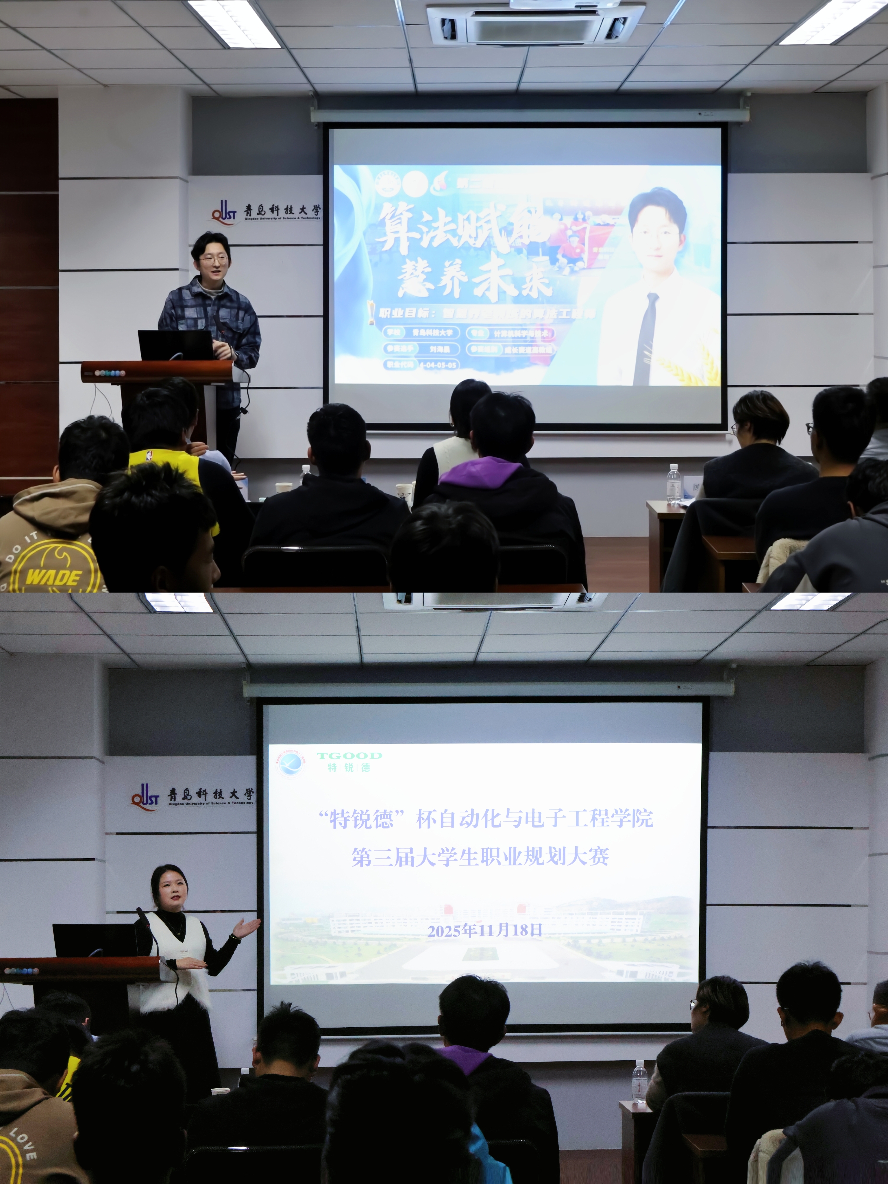 第二届山东省大学生职业规划大赛银奖获得者、信息学院刘海晨同学分享了参赛备赛经验与职业成长感悟,为在场同学提供了宝贵的学习借鉴。