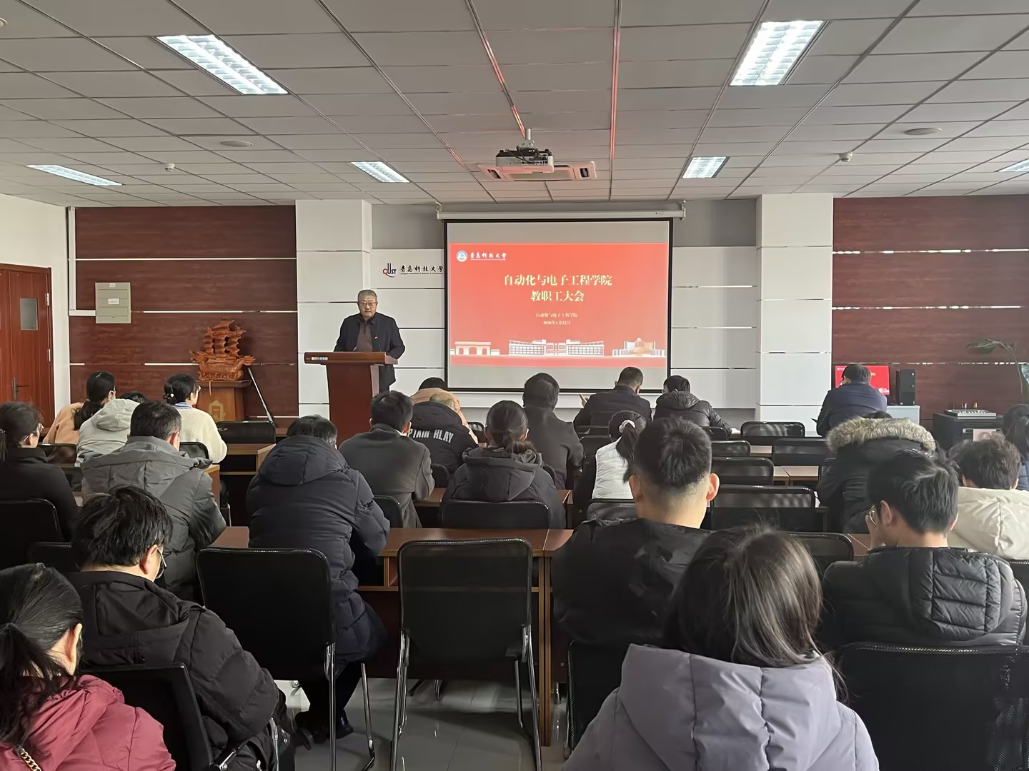 1月22日上午,毛片在学院楼410会议室召开新学期全体教职工大会,部署假期及下学期重点工作,明确绩效分配、安全管理、就业工作和教学建设等核心任务,学院领导班子及全体教职工参加会议。会议由学院党委书记郭永主持。