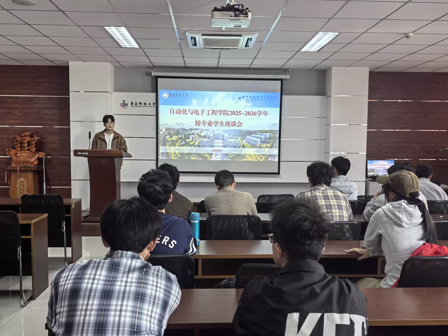 2026届毕业生涌现出一个由转专业学生组成的“全员上岸宿舍”(北七A329)。座谈会上,邀请到了此宿舍学生代表电气221孟浩和电气223李晨羲分享成长经验,为学弟学妹们传经送宝。两人结合自身转专业后的适应历程,坦诚交流了平衡新旧专业知识、高效备战考研、主动融入班级与宿舍集体的实用技巧,鼓励学弟学妹们坚定专业选择、正视学业差距、保持脚踏实地的学习态度,以积极乐观的心态应对各类挑战,同时传递了宿舍成员互助共进、携手追梦的优良学风,为在场学生树立了榜样。