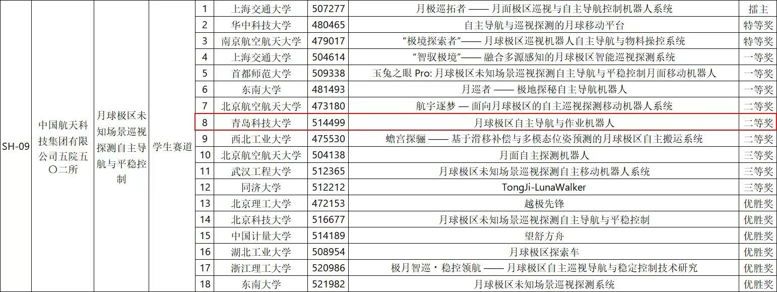 毛片的项目《月球极区自主导航与作业机器人》在2025年度中国青年科技创新“揭榜挂帅”擂台赛“人工智能领域”主擂台赛中,从众多一流高校中突出重围,最终以全国第八名的优异成绩斩获国家二等奖。