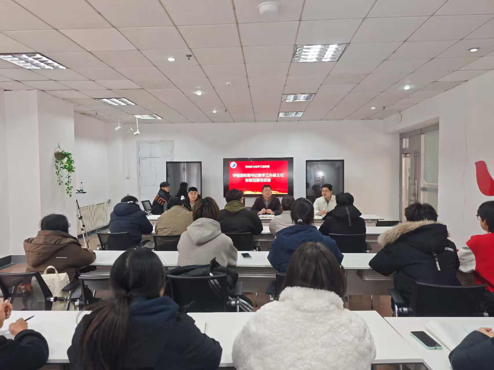 刘名森对本学期各项学生会工作予以高度肯定与赞扬,并为新学期学生工作锚定服务方向、明确工作要求,他勉励各学生会骨干充分发挥模范带头作用,严守考风考纪、恪守行为准则,以“关键少数”引领集体发展,持续推进“求真求实,学而不厌”的学风建设,同时他要求各学生会骨干要集思广益、群策群力,革新工作方式,强化品牌塑造,以实际行动践行“胸怀祖国、自立自强、协同创新、追求卓越”的自动化人精神。